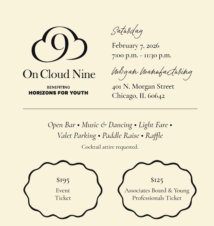 On Saturday, February 7, 2026, Horizons for Youth will celebrate its 26th annual cocktail event – On Cloud Nine.